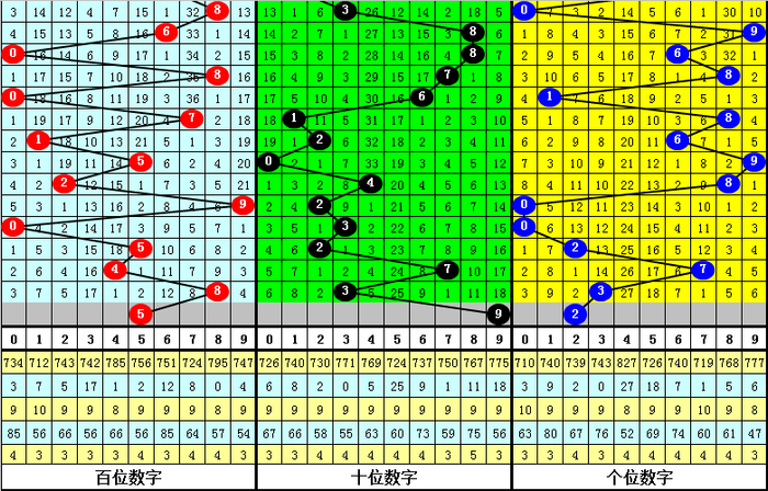 百位:下期百位2路号码仅出现了2次,开出比例相等低,本期应重心温雅2路号码回补,参考号码5。